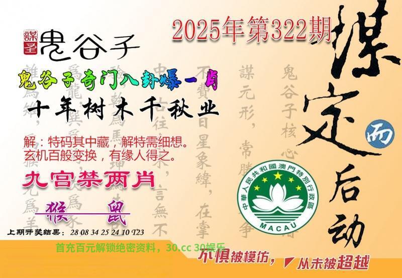 | 322期澳彩鬼谷子【十年树术千秋业】开羊47中 |